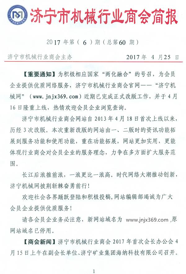 濟(jì)寧機(jī)械行業(yè)協(xié)會(huì)是經(jīng)民政部門批準(zhǔn)注冊(cè)的跨地域社會(huì)組織,該行業(yè)協(xié)會(huì)的職能是:“宣傳政策、提供服務(wù)、反映訴求、維護(hù)權(quán)益、推動(dòng)合作、促進(jìn)發(fā)展”。