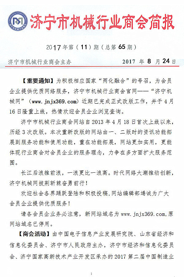濟(jì)寧機(jī)械行業(yè)協(xié)會是經(jīng)民政部門批準(zhǔn)注冊的跨地域社會組織,該行業(yè)協(xié)會的職能是:“宣傳政策、提供服務(wù)、反映訴求、維護(hù)權(quán)益、推動合作、促進(jìn)發(fā)展”。